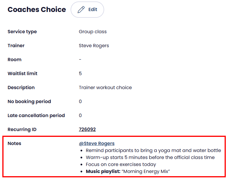 How to Add or Edit Notes for an Existing Class