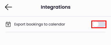 - Toggle the 'Export bookings to Calendar' tab.