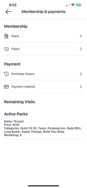 - Scroll down to the Membership & payments section then tap on that arrow to either Add a payment method or view your current registered payment method then update to a new one.