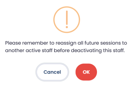 Please remember to reassign all future sessions to another active staff before deactivating this staff.